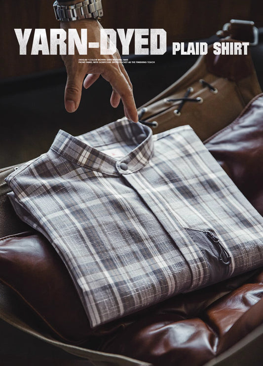 American Retro Workwear Gray Grid Yarn-Dyed Blended Men's Shirt