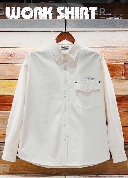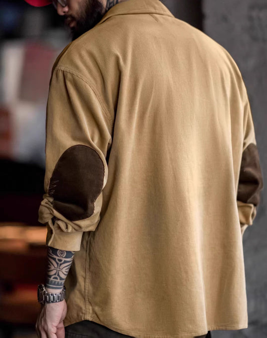 American Retro Workwear Corduroy Stitching Pure Cotton Men's Shirt