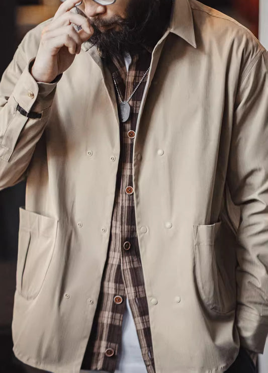 American Herringbone Double-Breasted All-Match Commuter Men's Shirt