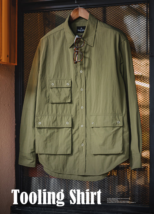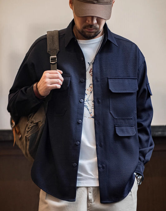 American Retro Pleated Outdoor Leisure Multi-Pocket Conventional Men's Shirt