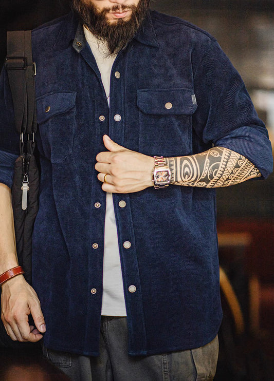 American Retro Heavy Knitted Corduroy Imitation Jacket Men's Shirt