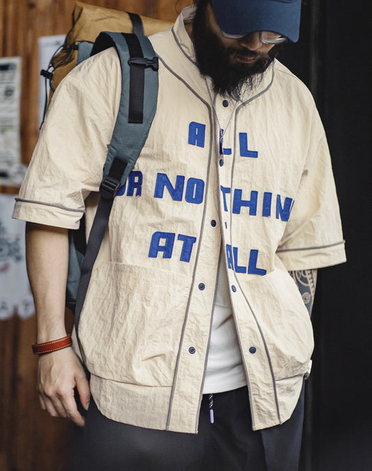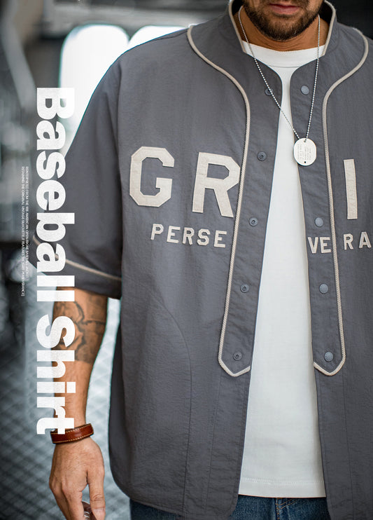 American Casual GRIT Baseball Uniform Patch Embroidered Gray Thin Men's Shirt
