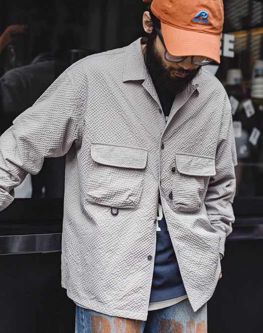 American Workwear Pleated Texture Woven Jacquard Men's Shirt