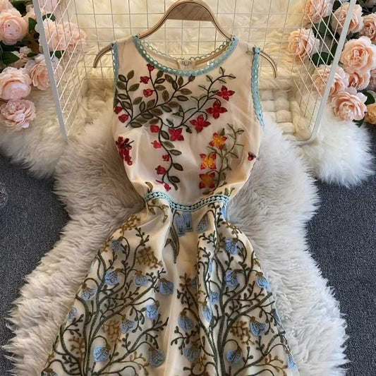 American Embroidery Elegant Round Neck Women's Dinner Dress