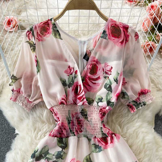 Super Fairy Retro Rose Print Seaside Holiday Elegant Women's Dress
