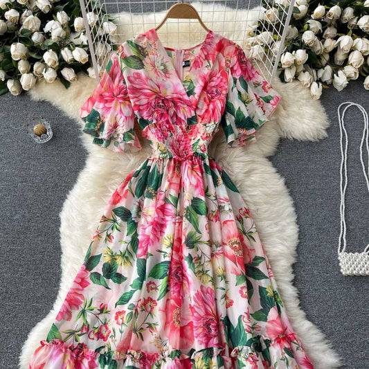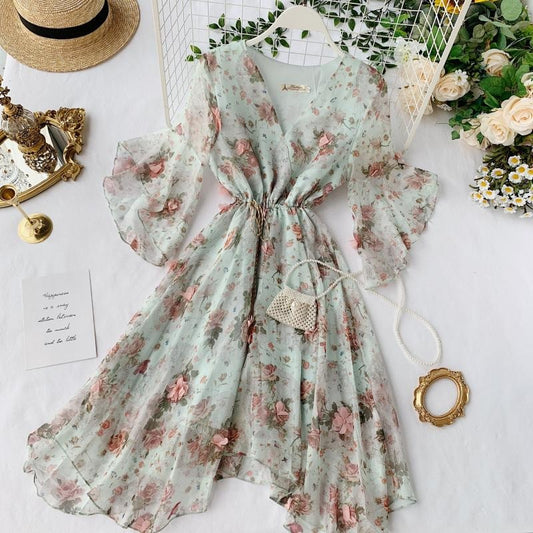 Elegant Trendy Fairy Printed Chiffon Summer Holiday Women's Dress