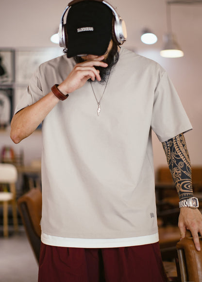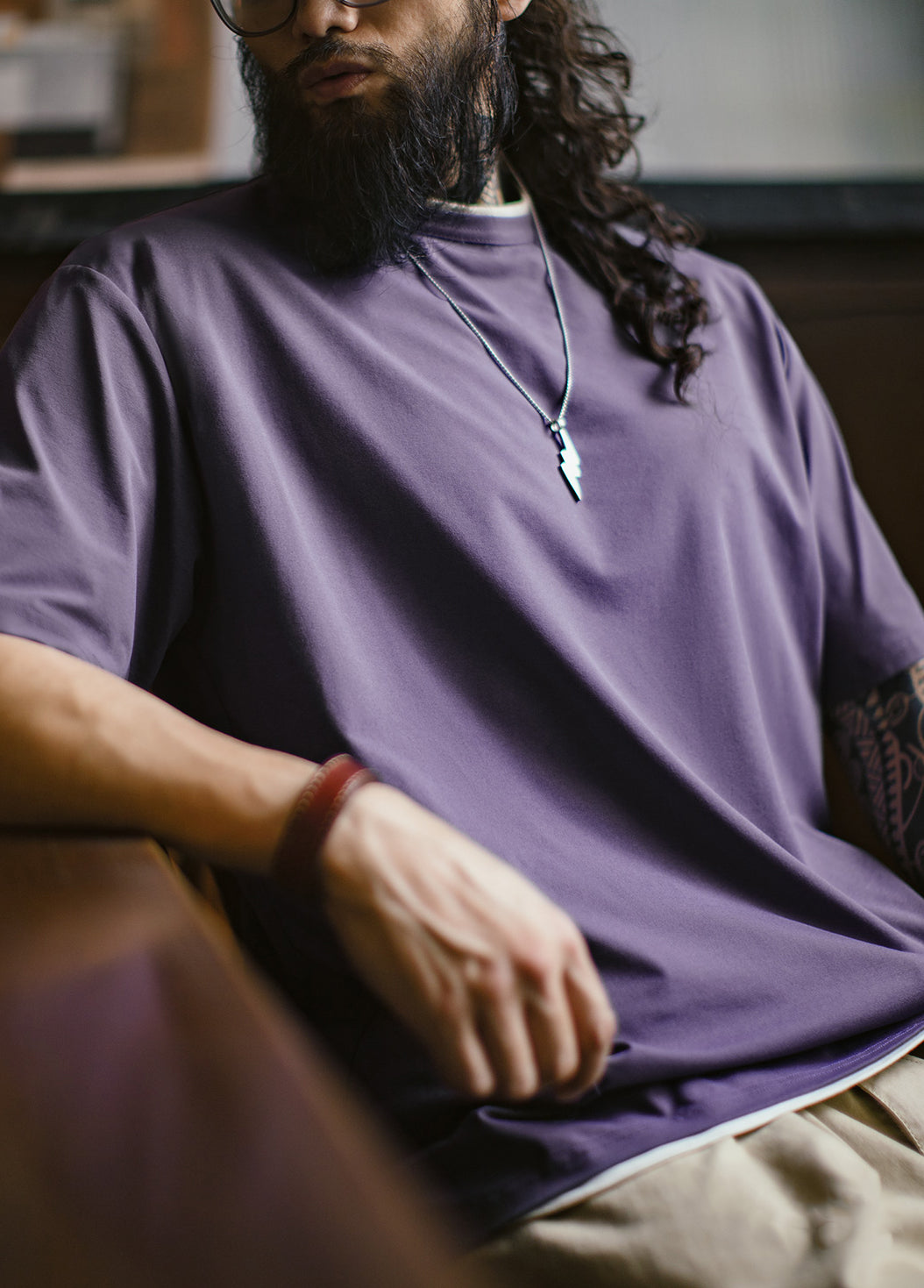 The smooth, stretchy material moves with you. No tight cling, no weird bunching—just freedom. The loose fit gives your body room to breathe, and the round neck adds that clean, casual finish. Whether you grab the cool gray or the bold purple, you’ll look sharp without even trying.