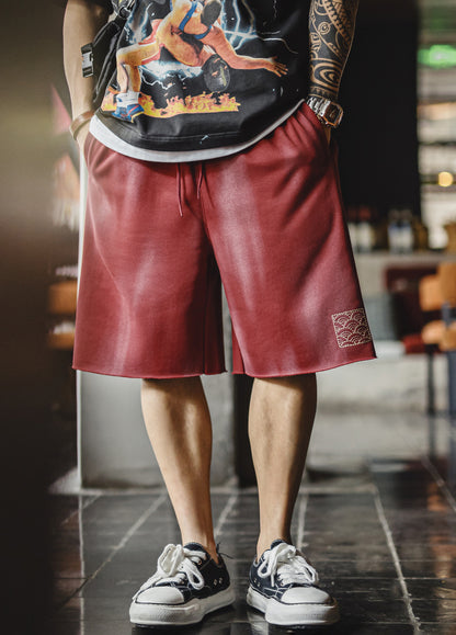 American Retro Tie-Dye Heavy Old Curling Straight Micro-Bounce Men's Shorts