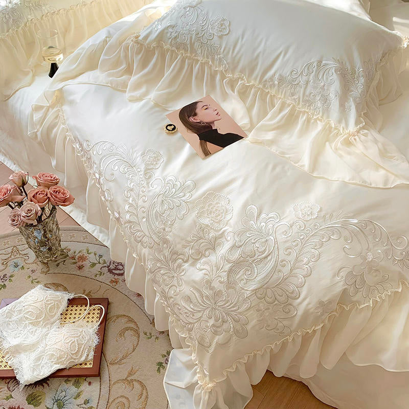 Fransk romantisk blonde prinsesse blødt bomuld firedelt sengesæt