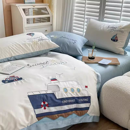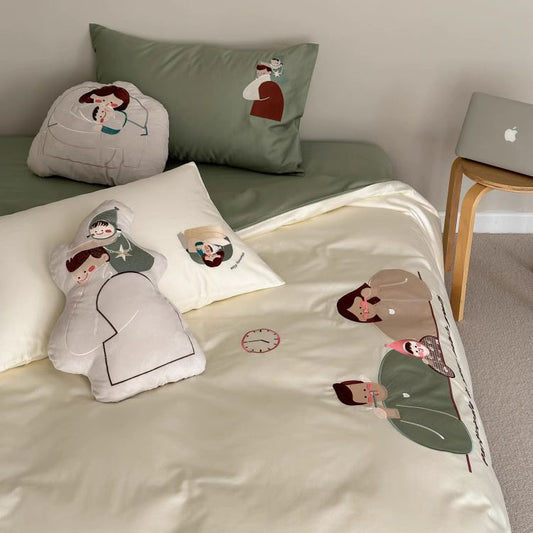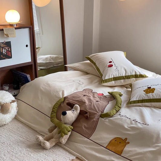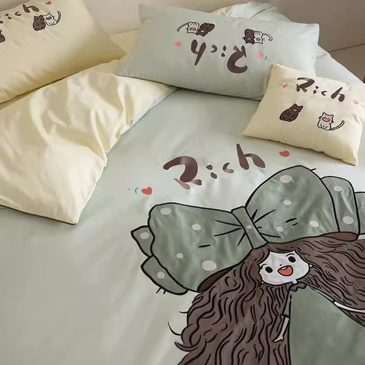 Vierteiliges Bettwäsche-Set aus reiner Baumwolle mit niedlichem Cartoon-Motiv