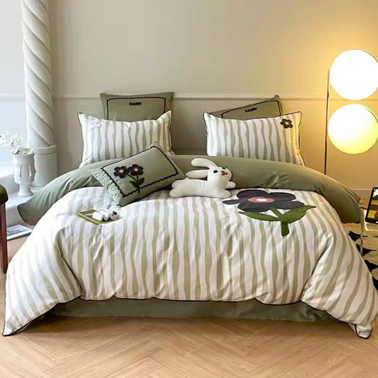 Nordic Simple Contrast Stripes Vierteiliges Bettwäscheset aus reiner Satin-Baumwolle