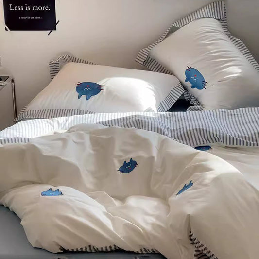 Cartoon Cute MoMo Little Lazy Cat Vierteiliges Baumwollbettset