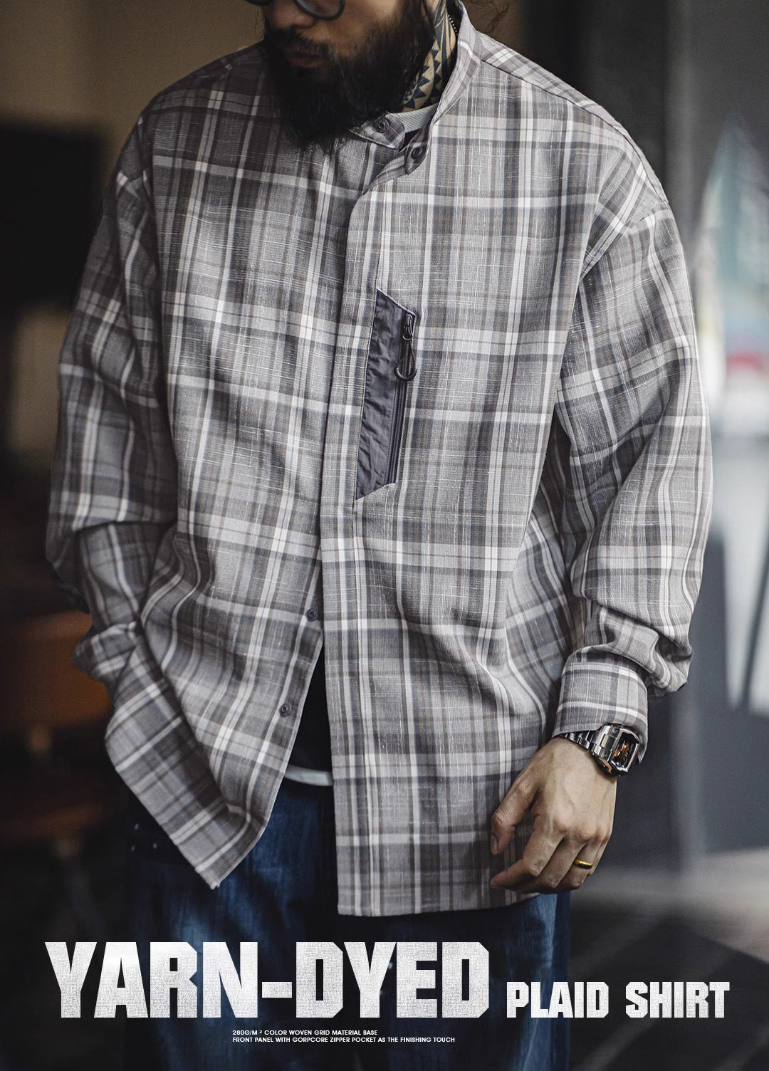 The subtle gray plaid pattern is perfect for those who want a versatile piece that pairs well with anything. Its yarn-dyed design gives the shirt a rich, textured look that stands out without being too loud. With a loose fit, you can move freely without feeling restricted, while still keeping your style on point.
