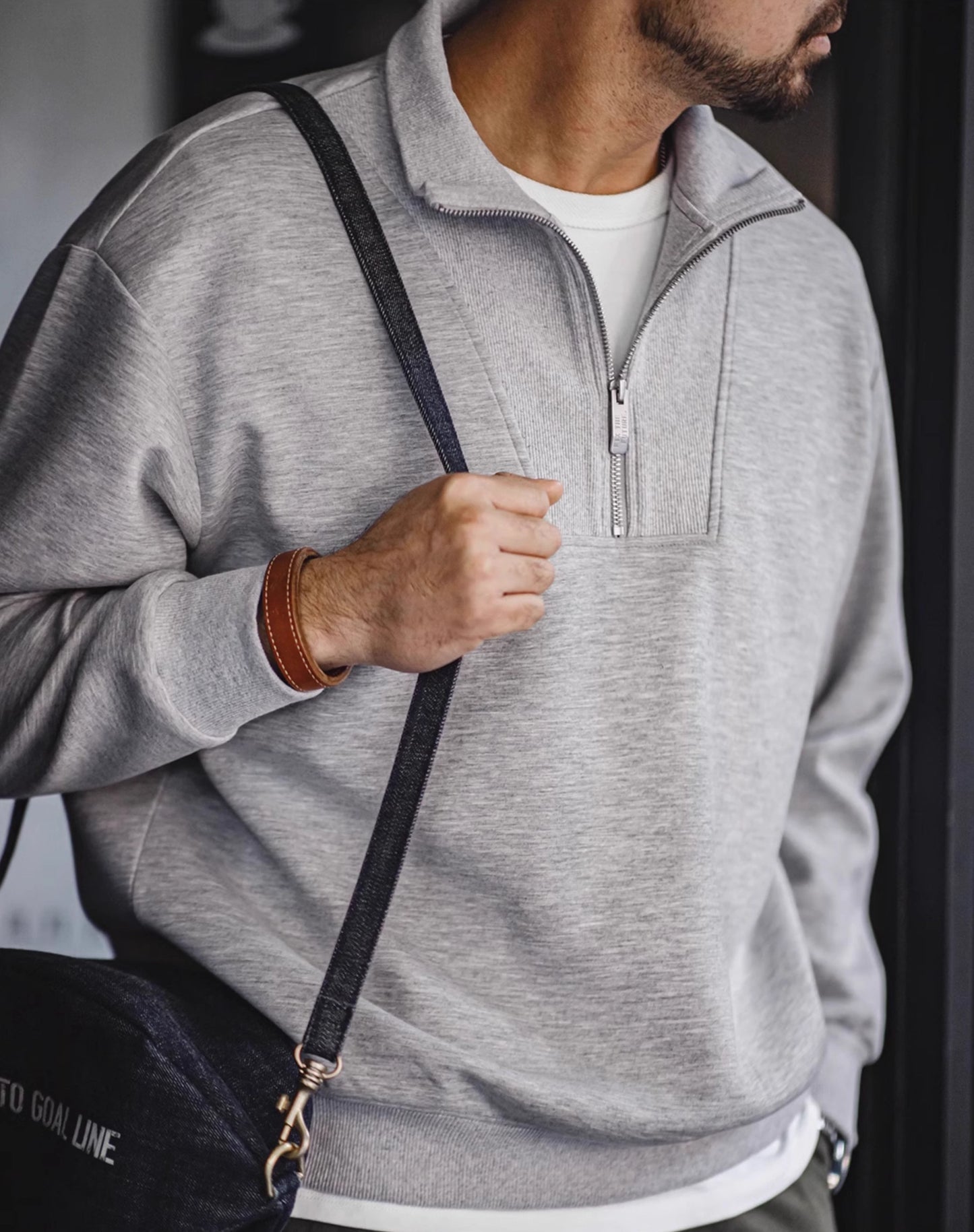 Introducing the American Workwear Air Layer Half-Zip Spliced Men's Sweater – your go-to choice for style, comfort, and versatility!