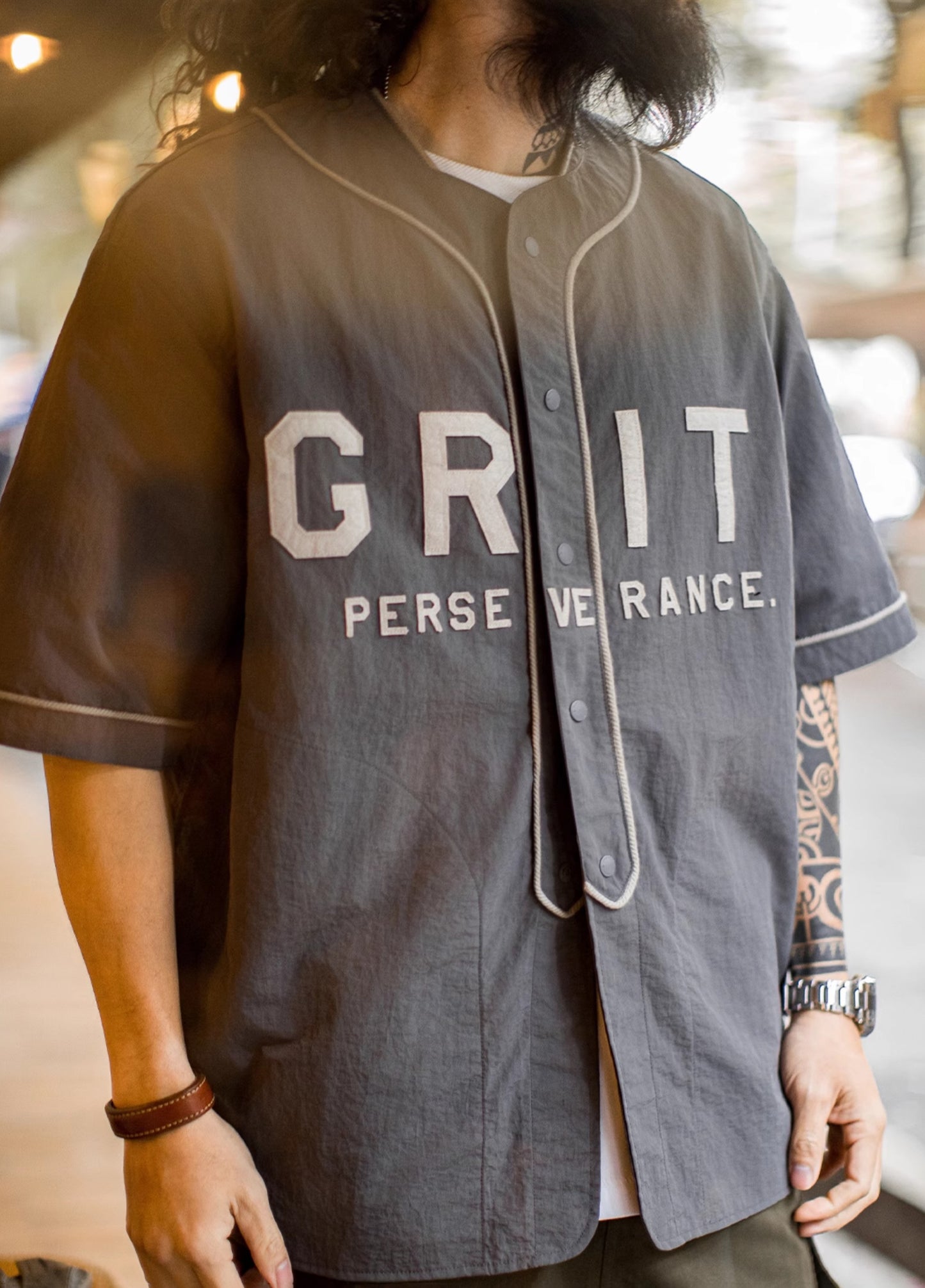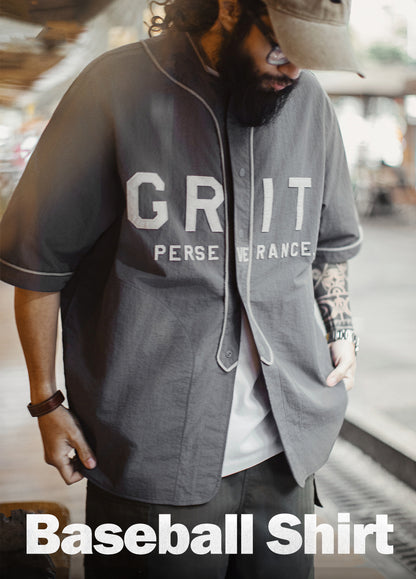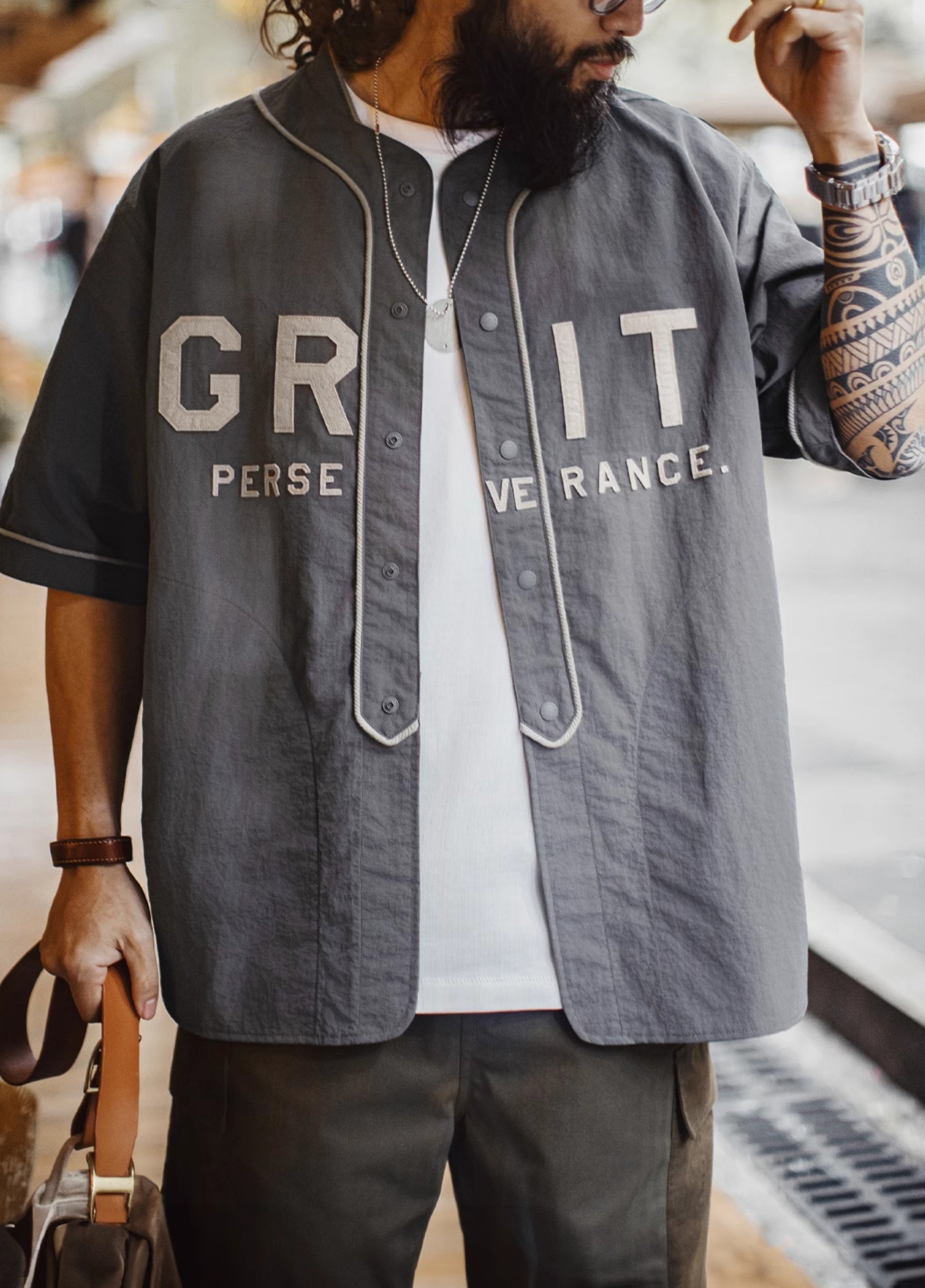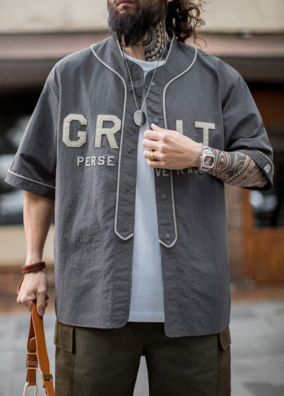 American Casual GRIT Baseball Uniform Patch Embroidered Gray Thin Men's Shirt