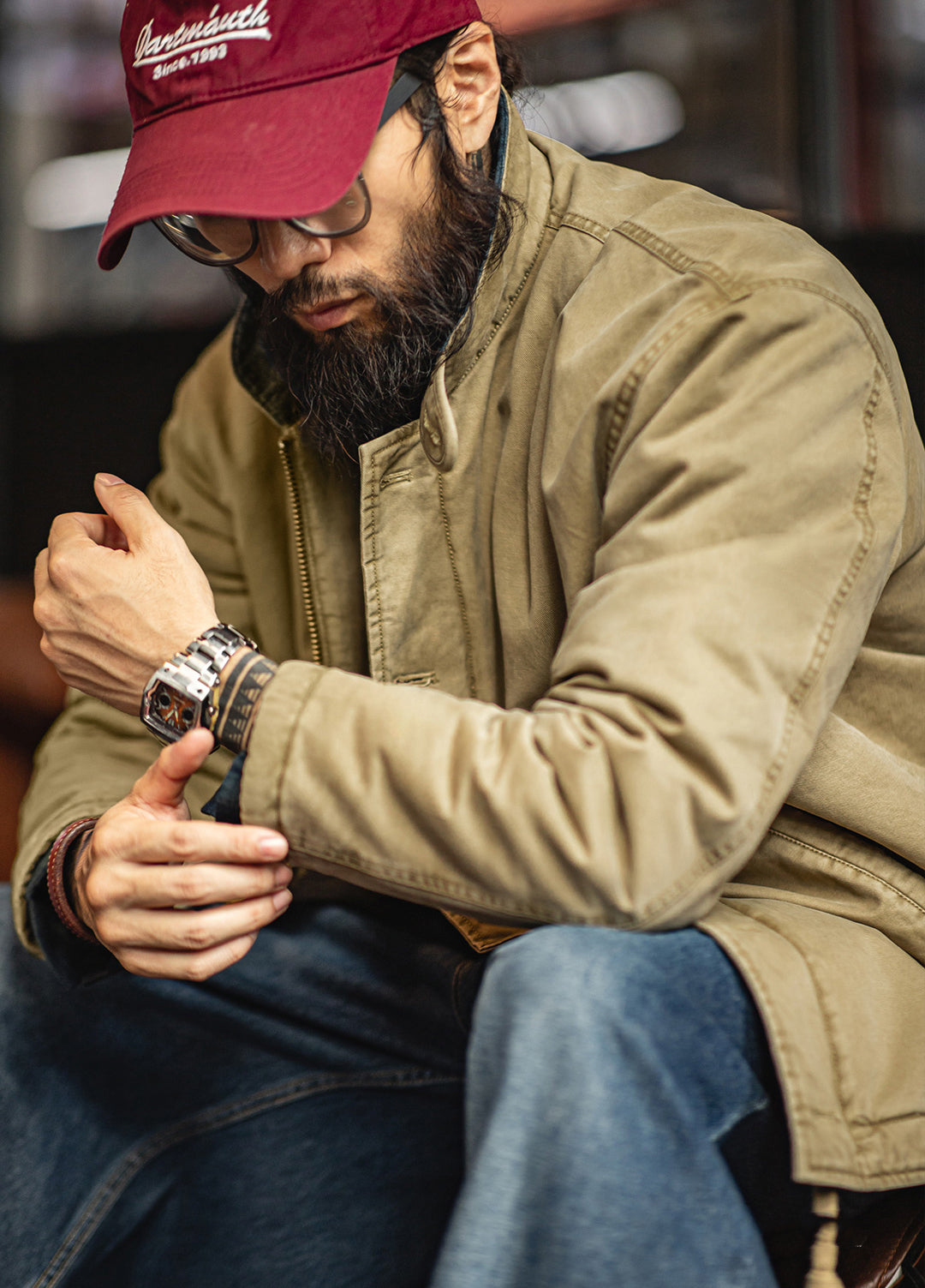 Level up your cold-weather style with the American Retro N1 Deck Suit Thickened Warm Cotton Short Quilted Men’s Jacket. This jacket keeps you warm without making you feel bulky, so you stay comfortable through long fall days and chilly winter nights. The thick cotton build traps heat well and gives you that soft, cozy feel every time you put it on.