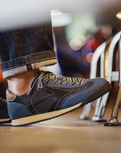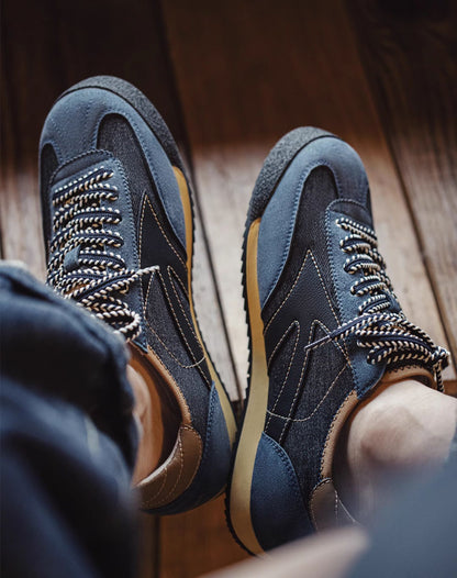 Level up your everyday style with the American Retro Jogging Forrest Gander Breathable Denim Men’s Sports Shoes. These navy blue sneakers bring serious vintage vibes with a modern twist. Whether you're out for a jog or just vibing around town, these kicks got your back.