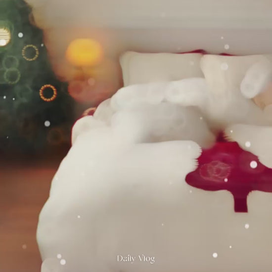 The bright red color brings instant Christmas spirit to your room, while the cute cartoon tree design adds a playful, cheerful vibe. It’s perfect for creating that magical holiday feeling, whether it’s in your bedroom, a guest room, or even a kid’s space. The embroidery details give it a charming, high-quality finish that makes your bed look as good as it feels.