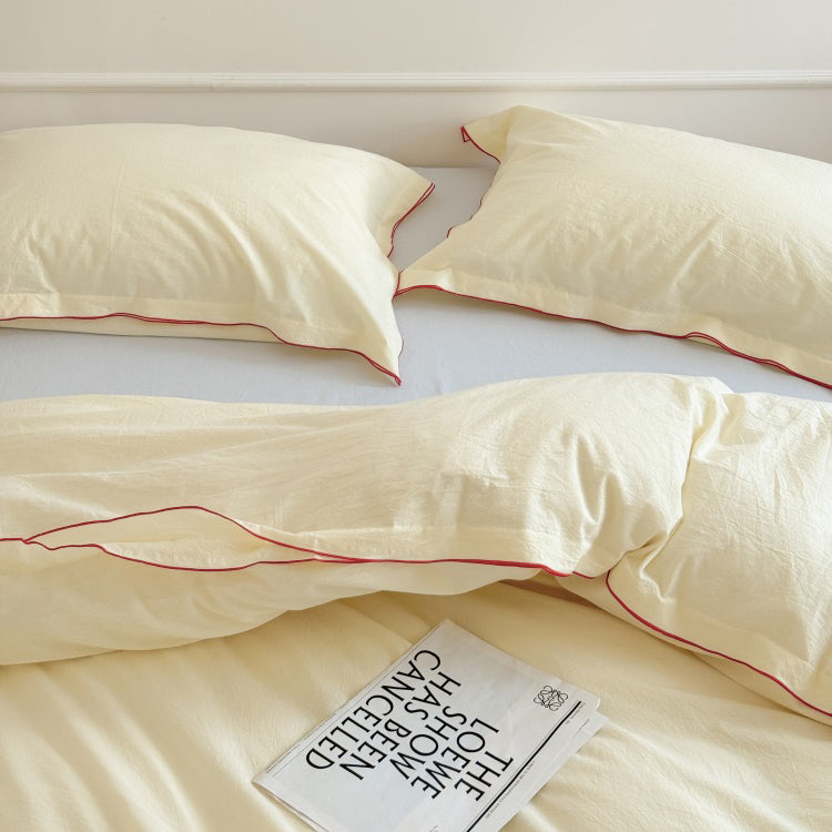 Nordic Solid Color Washed Four-Piece Pure Cotton Suitable For All Seasons Bed Set