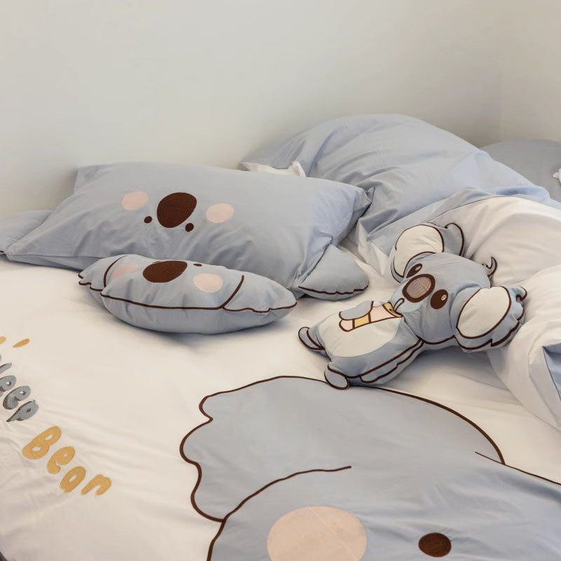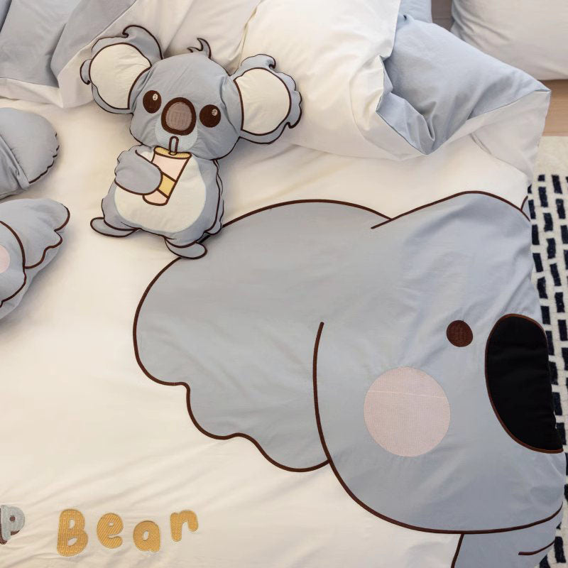 Cute Little Koala Cartoon Washed Four-Piece Pure Cotton Bed Set