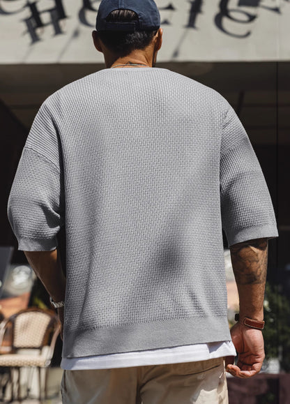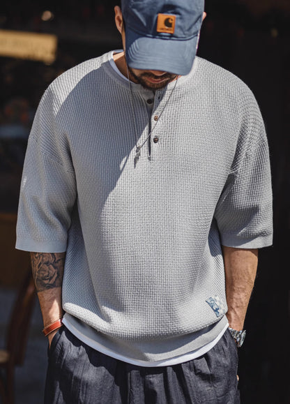 American Bamboo Pattern Henry Drape Knitted Half Sleeves Men's T-Shirt