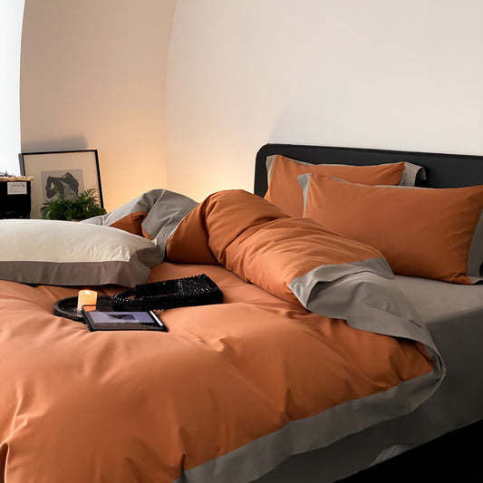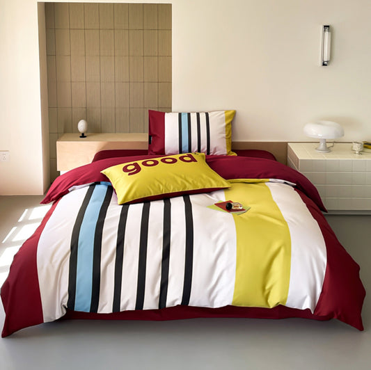 Juego de cama de algodón puro satinado de cuatro piezas con rayas de contraste simples nórdicos
