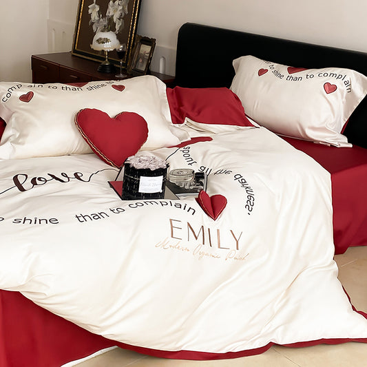 Light Luxury High-End Black Love Four-Piece Pure Cotton Bed Set