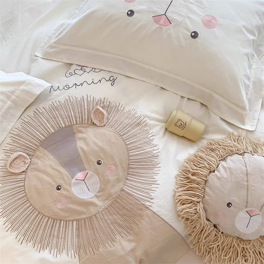 Juego de cama de cuatro piezas lavado de algodón puro Cute Little Lion