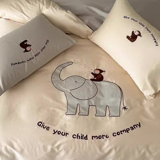 Juego de cama de cuatro piezas de algodón para bebé con bonito elefante de dibujos animados