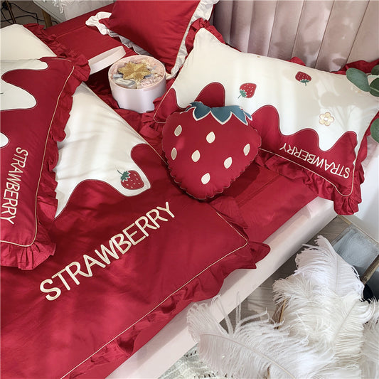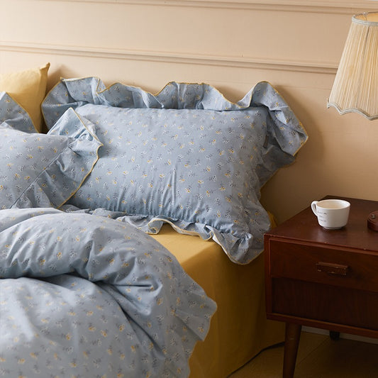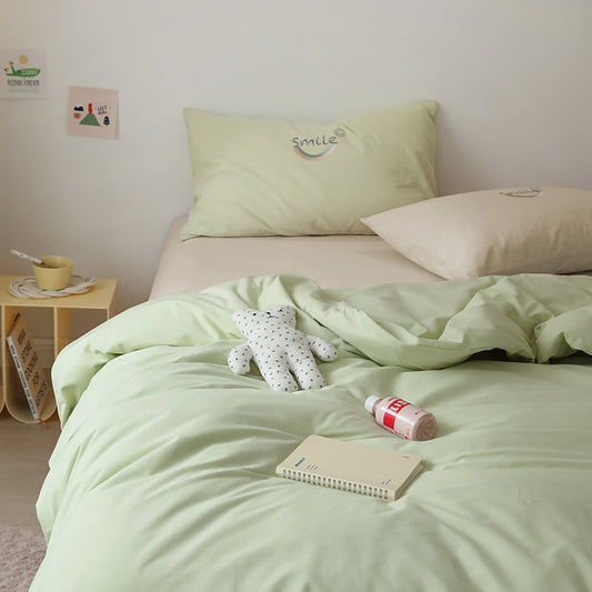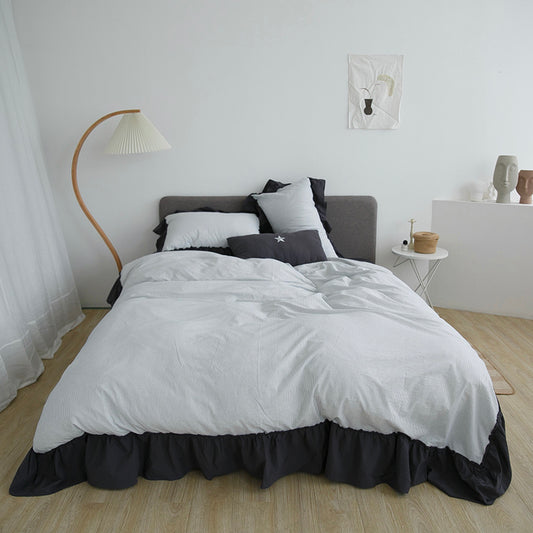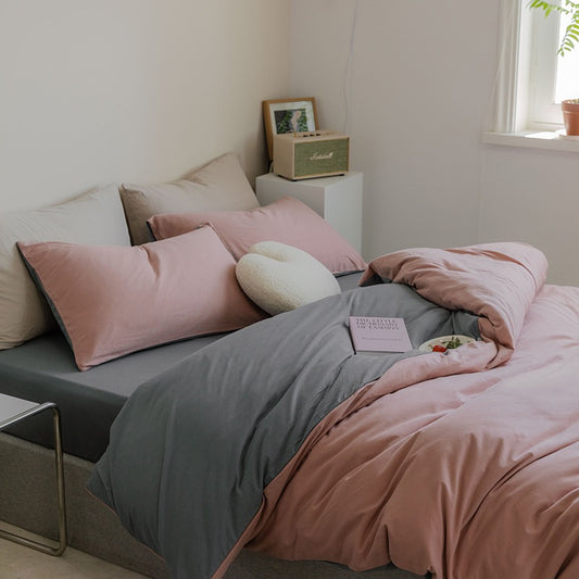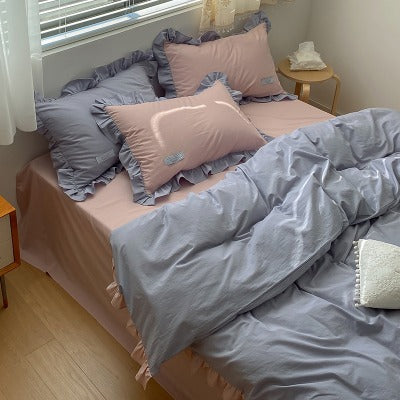 Juego de cama de princesa de cuatro piezas de algodón lavado a juego con colores