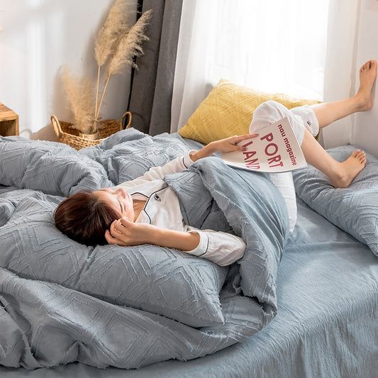 Juego de cama súper suave de algodón escandinavo simple de cuatro piezas