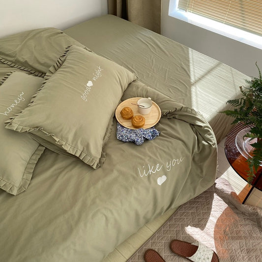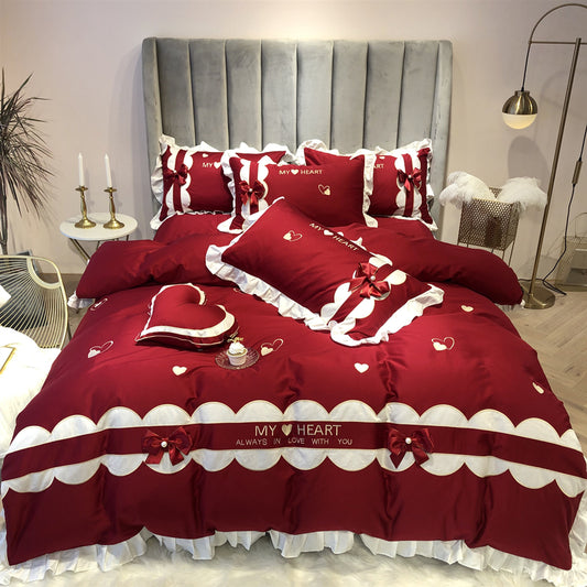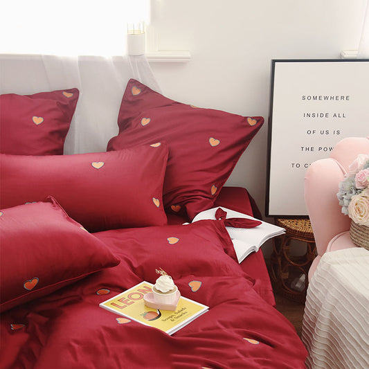 Juego de cama de cuatro piezas con bordado Wedding Love de algodón básico