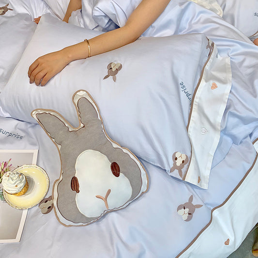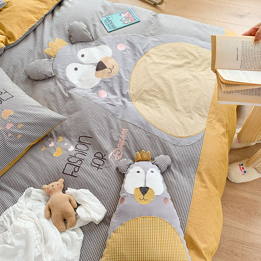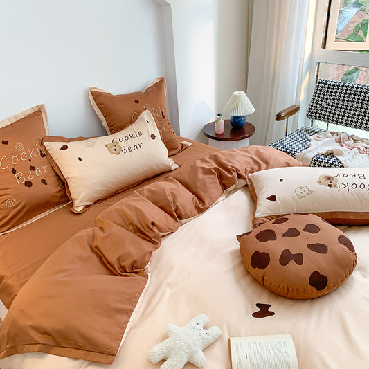 Juego de cama de seis piezas con bordado de oso galleta de dibujos animados lindo