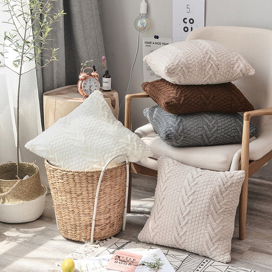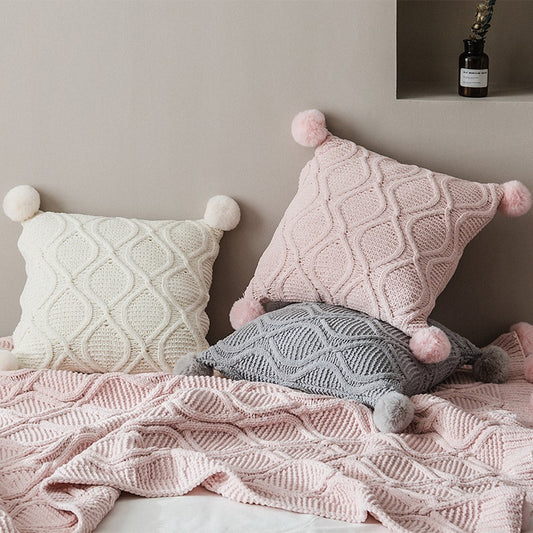 Cojines nórdicos acogedores de chenilla con acento de pompones de punto