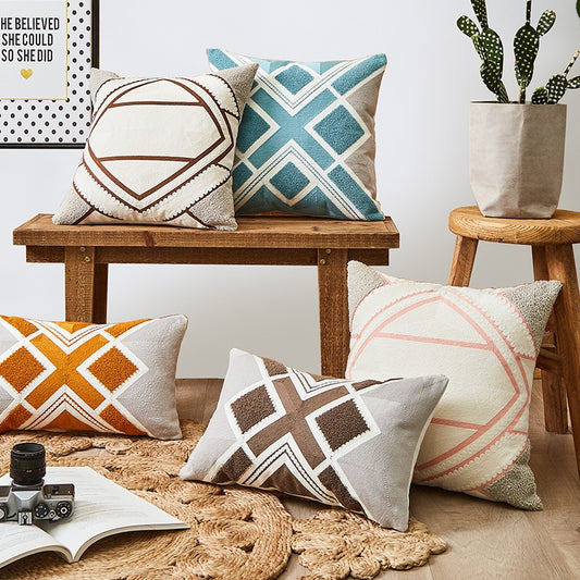Bordado Artístico Abstracto Copetudo Vibrante Cojines con múltiples patrones