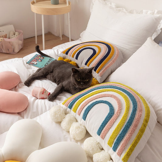 Macaron de paleta de colores pastel con acento de borla alegre Cojines