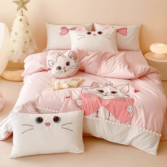 Ensemble de lit quatre pièces en pur coton lavé Mary Cat Cartoon