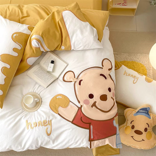 Parure de lit quatre pièces en pur coton lavé avec dessin animé d'ourson mignon