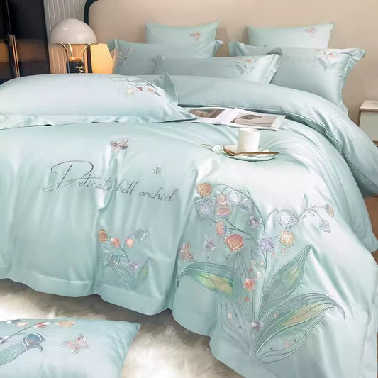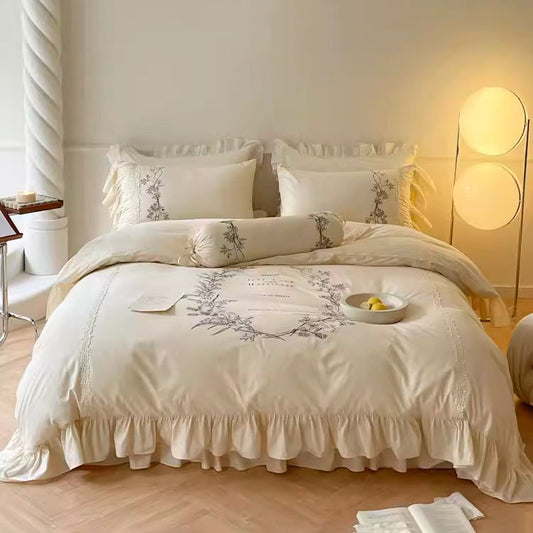 Ensemble de lit quatre pièces brodé en coton princesse de luxe léger nordique