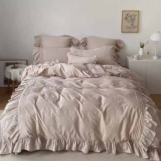 Ensemble de lit quatre pièces en coton épais délavé Princess Ball Lace