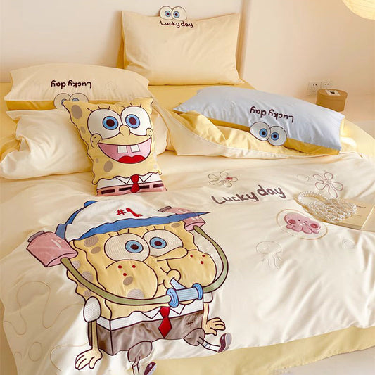 Parure de lit 4 pièces en pur coton Bob l'éponge
