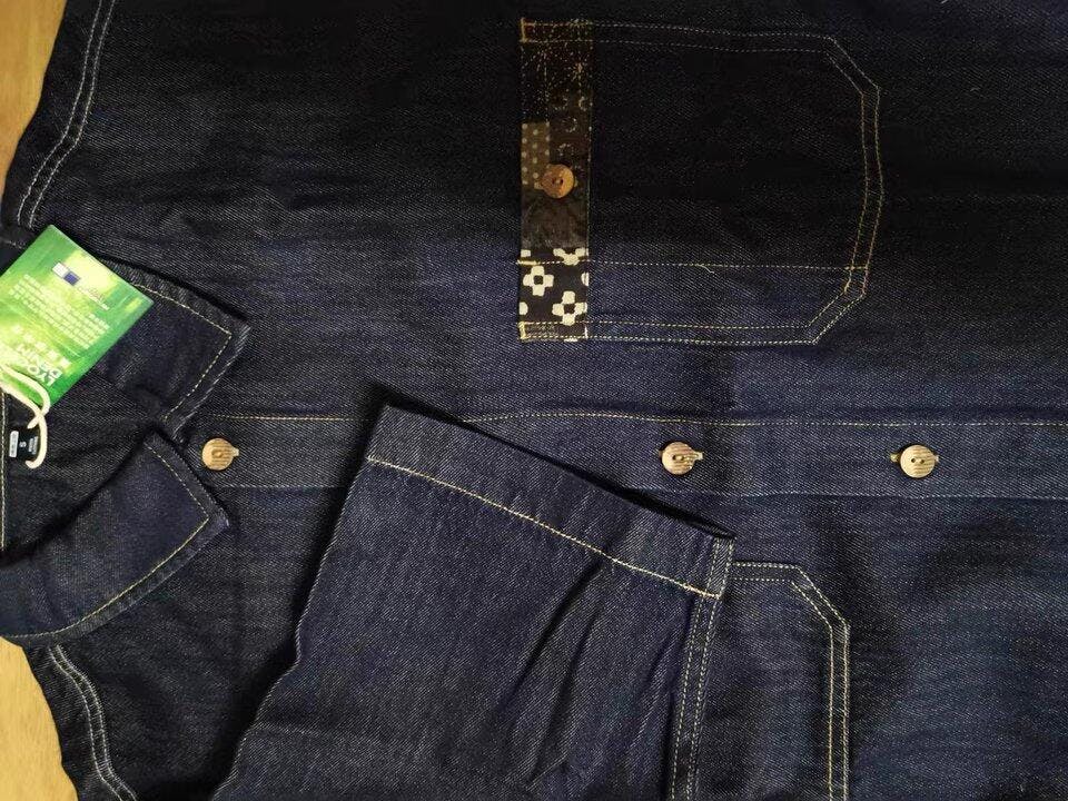 American Retro Boro Denim Resurgence Blue Dye Lapel Men's Shirt