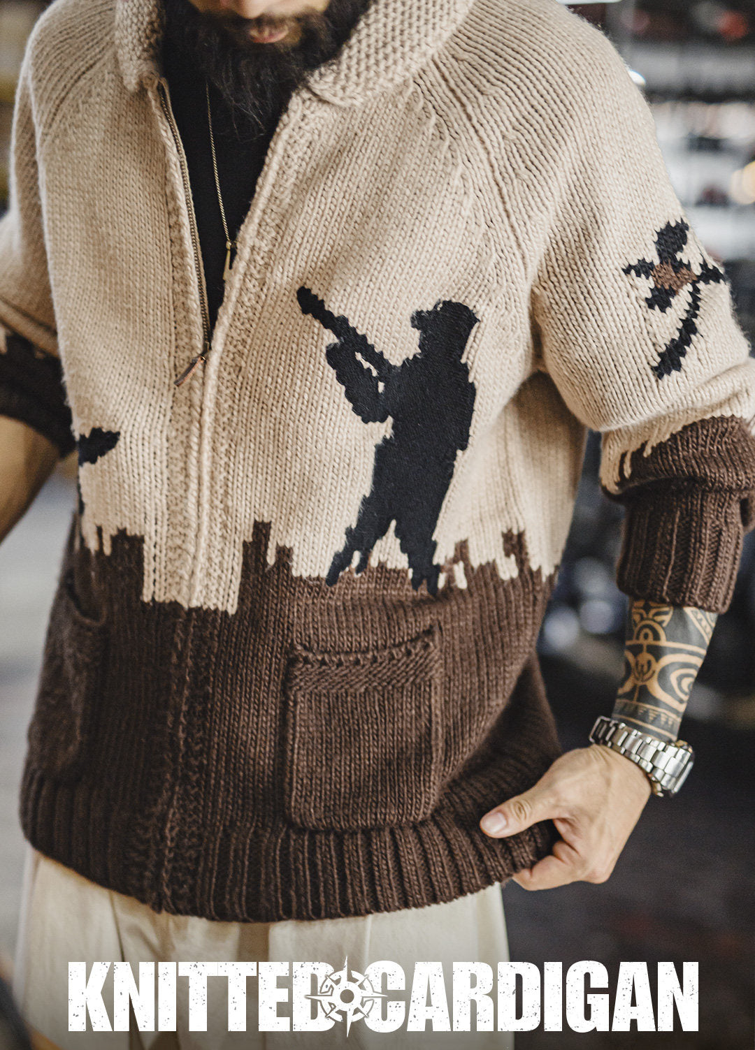 The khaki and brown color combo adds that earthy, vintage feel that works with everything. Jeans, chinos, boots—you name it. The hunting-style embroidery adds just the right amount of detail to make it stand out, but still keeps things classy.