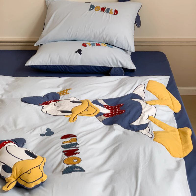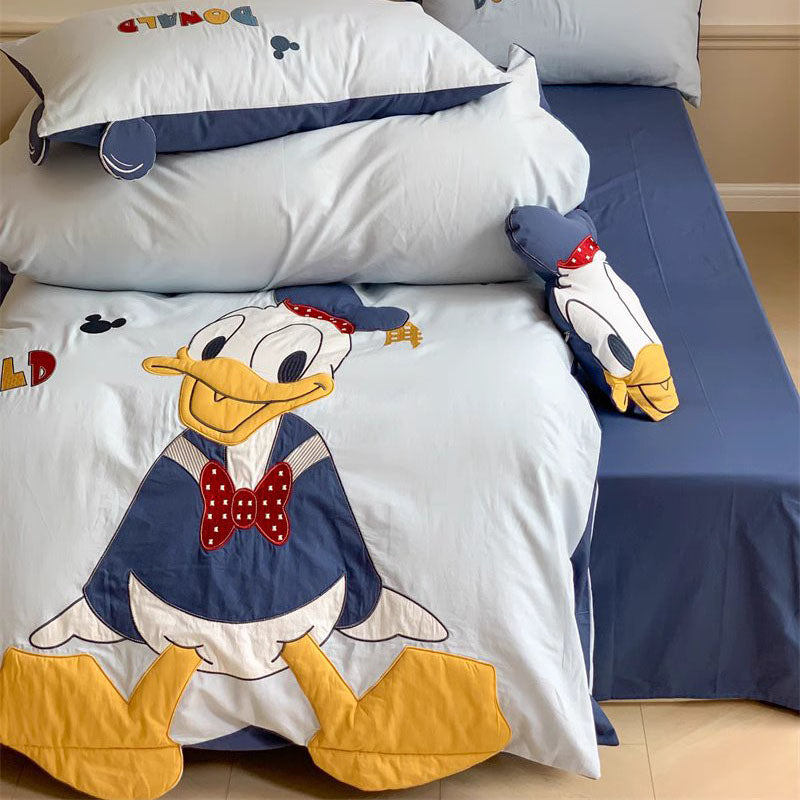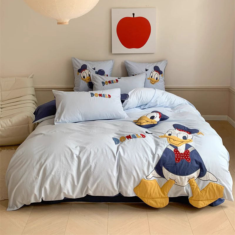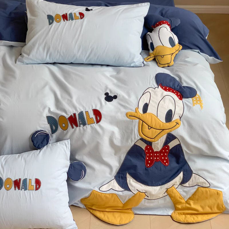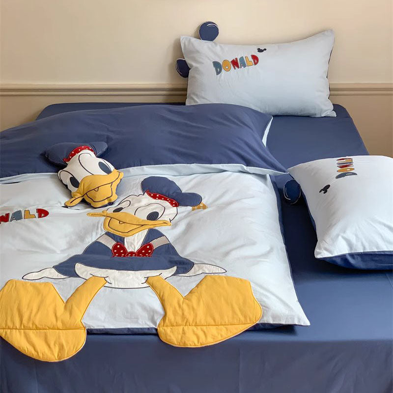 Ensemble de lit quatre pièces en coton lavé Donald Duck et Daisy Duck