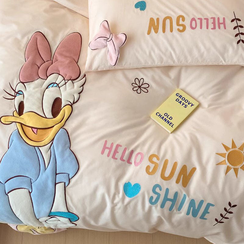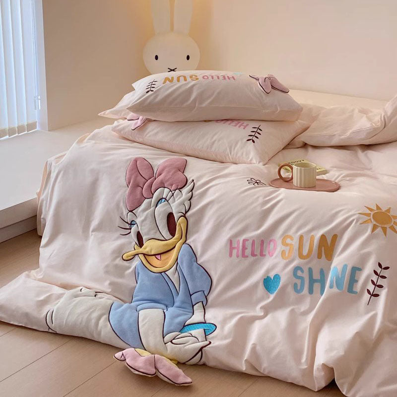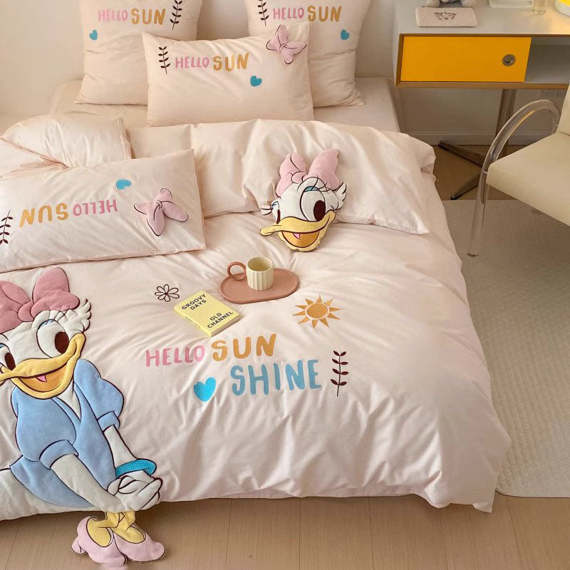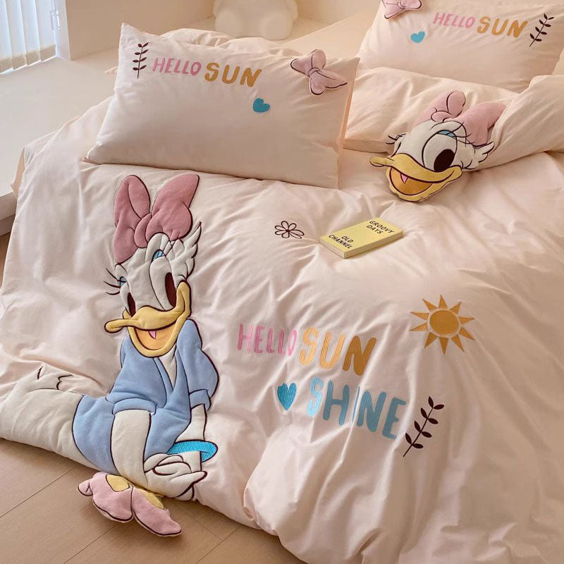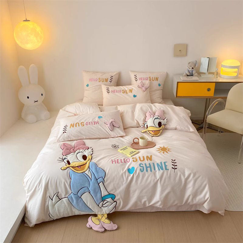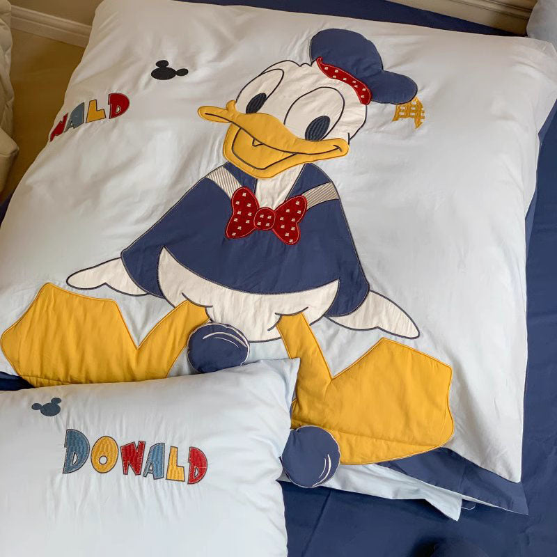 Ensemble de lit quatre pièces en coton lavé Donald Duck et Daisy Duck