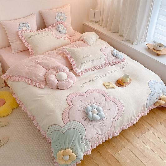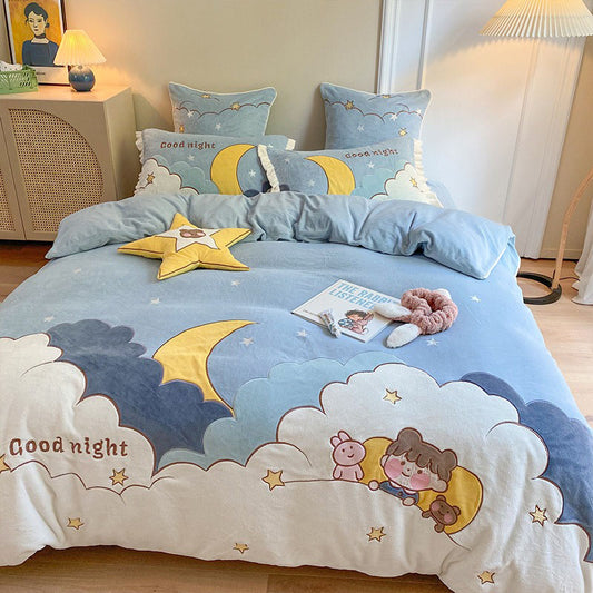 ערכת מיטה ארבע חלקים מצוירת חמודה חורף קורל קטיפה חורף ארבעה חלקים