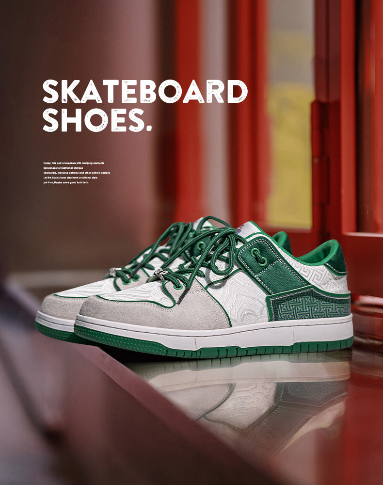Looking for sneakers that make a statement? These American Retro Fortune Silk Embroidery Sneakers bring bold style with a touch of tradition. The green and white color combo stands out, while the intricate silk embroidery adds a unique twist. Whether you're dressing up casual fits or adding flair to your streetwear, these kicks bring serious style.