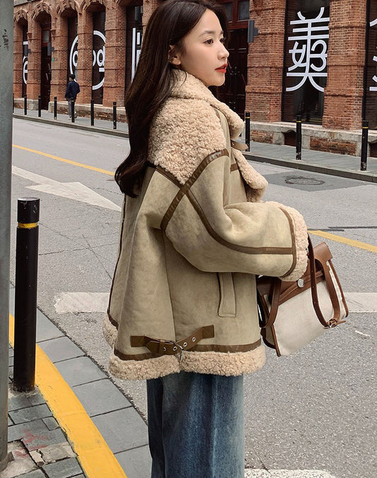 Báránygyapjú pamut szőrme egyrészes rövid téli velúr női kabát