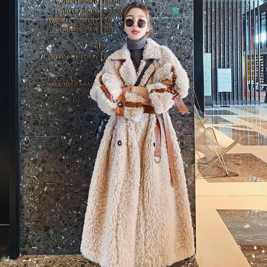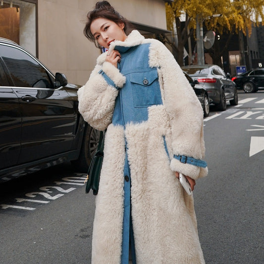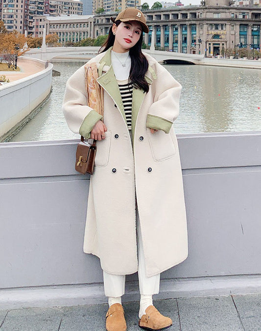 Kifordítható báránygyapjú téli gyengéd velúr szőrme egyrészes női kabát