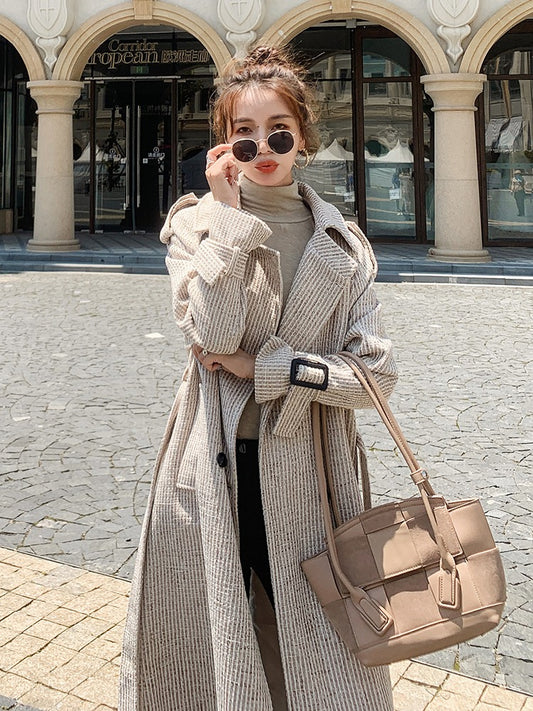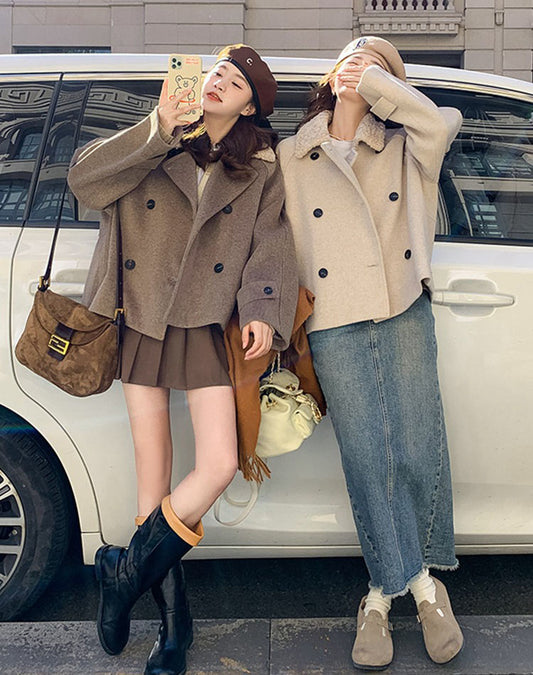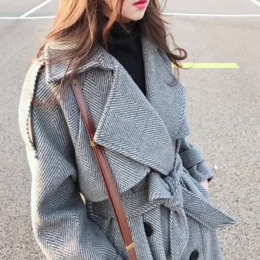 Durva gyapjú laza Hepburn illatos női kabát